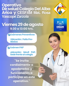 Estimada Comunidad Educativa: Junto con saludar, se informa que para este viernes 29 de agosto del mes en curso, en nuestro colegio se realizara un